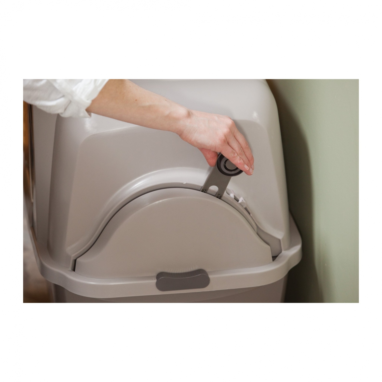 Dźwignia aktywuje zautomatyzowany i bezszelestny proces Pull and Refresh, który szybko i skutecznie odświeża pojemnik na śmieci, jednocześnie zbierając odpady w jednym prostym procesie. Czysta ściółka jest zawracana z powrotem do kuwety, a odpady kumulują się w pojemniku z wyściółką dla łatwego usuwania. Napełnienie ściółki jest również łatwe, po prostu otwórz drzwi dostępu do konserwacji i dodaj je w razie potrzeby.