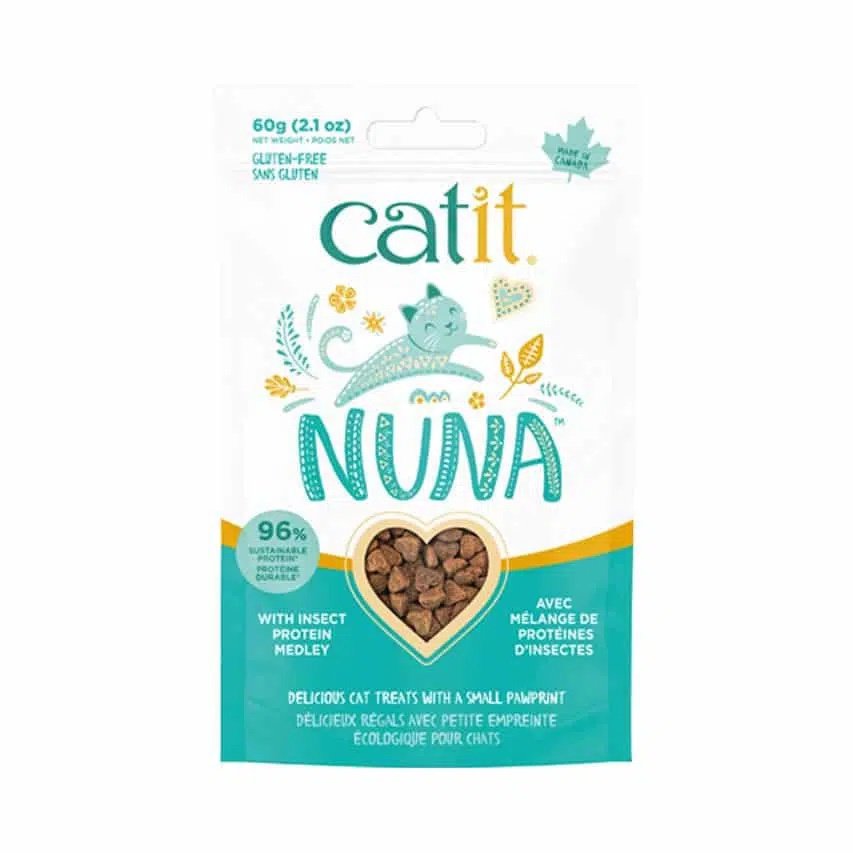 Catit Nuna Snacks - Insect Protein Snacks for Cats - Przekąski dla kotów klasy premium z małym śladem ekologicznym. Pyszne i pożywne przysmaki dla kotów zawierające do 97% białka pochodzącego ze zrównoważonej produkcji. Oparte na czystym, wysokiej jakości białku owadzim. Lekkostrawne i bezglutenowe. Są całkowicie pozbawione glutenu i nie obciążają układu pokarmowego kota.