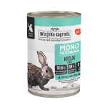 SKŁAD: 70 % królik (60 % mięso, 10 % wątroba), 28,6 % bulion z królika, 1 % składniki mineralne, 0,2 % olej z łososia, 0,1 % drożdże piwne suszone, 0,1 % ekstrakt Yucca Mojave.