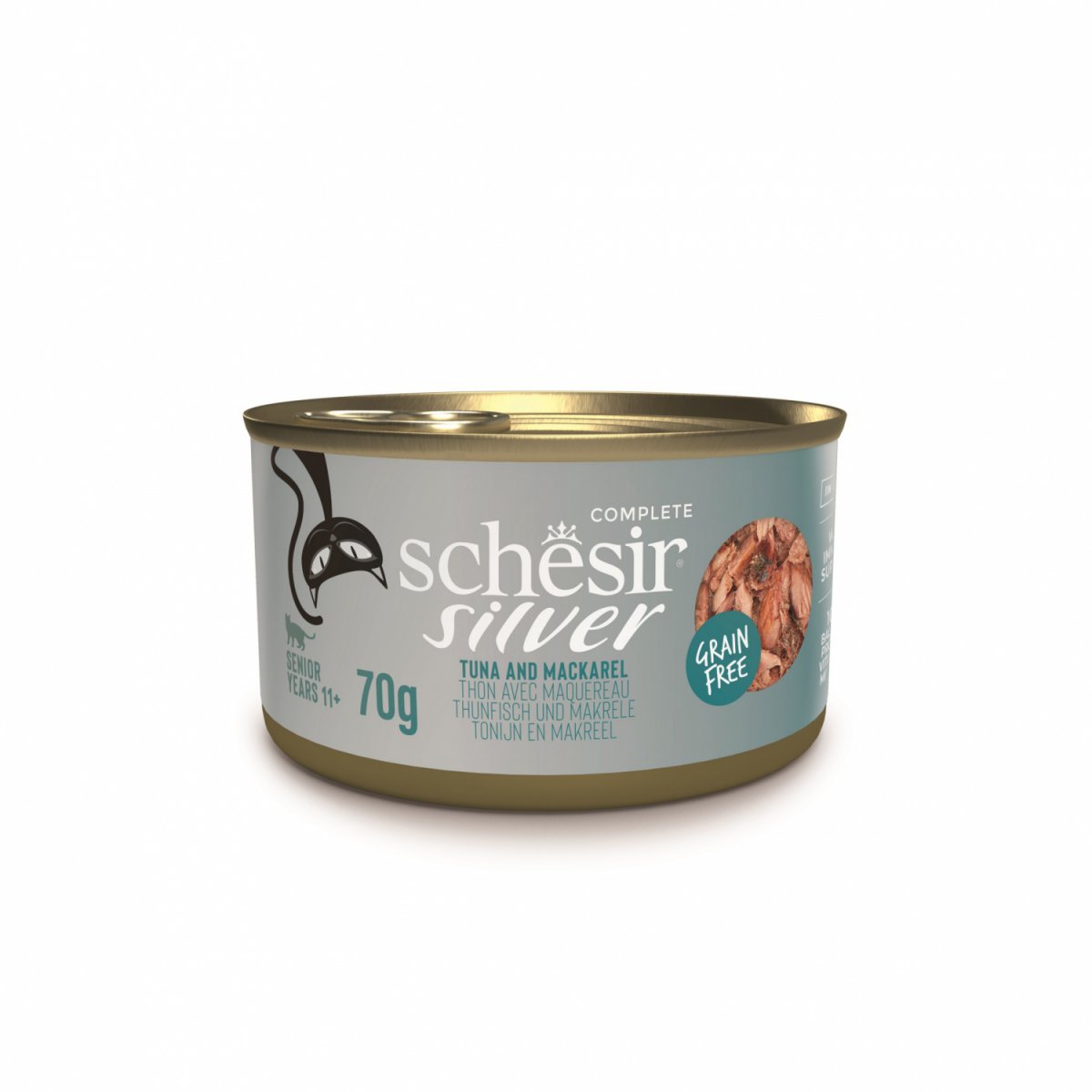 Schesir Silver to linia minimalnie przetworzonych, kompletnych i zbilansowanych mokrych karm, które pomagają utrzymać zdrowie i szczęście starszych kotów, dzięki specjalnym formułom opracowanym specjalnie dla nich.