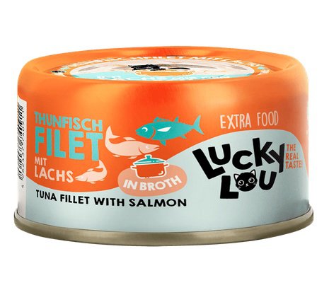 Koty, lubią być rozpieszczane. Też lubisz od czasu do czasu prawdziwą ucztę, prawda? Dokładnie tak samo jest z kotami. Kochają dodatki! I dlatego do linii karm mokrych dodaliśmy Lucky Lou Extra Food. To soczysty filet przygotowany w galarecie lub w bulionie. To jest ekstra pyszne!