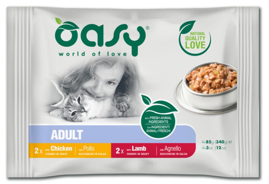 OASY lifestage, to delikatne kawałki w pysznym sosie, przyrządzone z naturalnych składników, ze świeżym mięsem. Receptury lifestage zostały opracowane w taki sposób, aby zaspokoić szczególne wymagania kotów, także ze względu na ich wiek. Nie zawierają sztucznych dodatków w postaci konserwantów, barwników. Nie zawierają również skladników GMO ani soi.