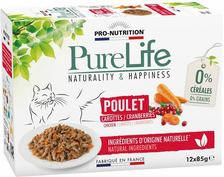 Kurczak* (28%). Wieprzowina*. Łosos* (4%). Tapioka. Minerały. Włókno grochu . Wysłodki buraczane*. Marchew (suszona marchew* 0,4%, odpowiednik 4% marchew). Olej z ryb. Skrobia ziemniaczana. Autolizaty z ryb. Maczka Zurawina* (0,1%). * Składniki pochodzenia naturalnego.