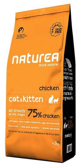Stawiając za główny cel znalezienie doskonale zbilansowanego pożywienia dla kotów, Naturea Cat & Kitten Chicken idzie dalej i zbliża się do diety, którą twój kot jadłby w środowisku naturalnym.