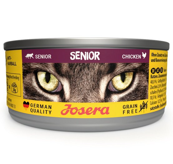 Starsze koty często niechętnie zaglądają do miski z wodą – dlatego mokra karma Josera Senior znakomicie sprawdza się także jako codzienne źródło płynów.