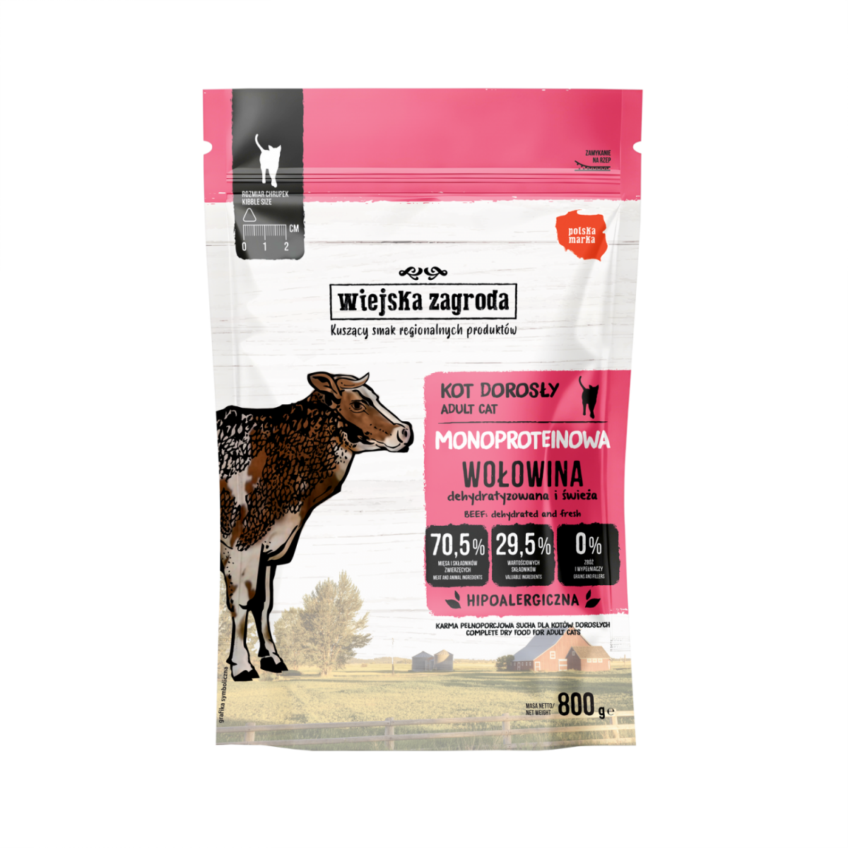 Wiejska Zagroda bezzbożowa monoproteinowa karma sucha dla kotów z wołowiną