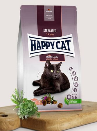Białko drobiowe **, mączka mięsna, mączka z łososia (11,0%), mąka kukurydziana, mąka ryżowa, kukurydza, płatki ziemniaczane, lignoceluloza (5,5%), tłuszcz zwierzęcy (w tym drób), pulpa buraczana * (pozbawiona cukru), olej słonecznikowy (1,6 %), hydrolizat rybny *, wytłoki jabłkowe * (0,8%), chlorek potasu, olej rzepakowy (0,4%), drożdże *, chlorek sodu, kocimiętka (0,25%), całe jajko suszone, wodorosty *, siemię lniane (0,16%), sproszkowana cykoria (0,15% = 0,1% inuliny), jukka schidigera * (0,1%), mięso małży * (0,05%), drożdże * (ekstrakt, 0,02% = 0,0032% MOS), ostropest plamisty (0,013%), karczoch (0,013 %), mniszek lekarski (0,013%), imbir (0,013%), liście brzozy (0,013%), pokrzywa (0,013%), rumianek (0,013%), kolendra (0,013%), rozmaryn (0,013%), szałwia (0,013 %), korzeń lukrecji (0,013%), tymianek (0,013%). *) suszony, **) suszony, częściowo hydrolizowany.