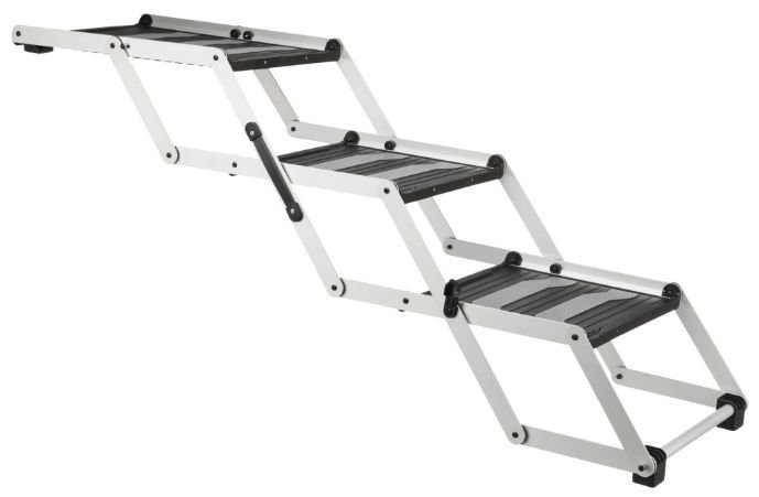 Dla bezpieczeństwa Twojego pupila ma antypoślizgowe pokrycie oraz stopnie z TPR. Wykonana plastiku jest łatwa w czyszczeniu. Przeznaczona dla psów o wadze do 25 kg. Jest potrójnie składana, po złożeniu zajmuje mało miejsca: 39 x 44 x 25 cm, ma uchwyt do przenoszenia.