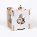 Dwukolorowy domek dla kota. Jest elegancki i wykonany z wysokiej jakości materiałów, dodatkowo nie wymaga narzędzi przy montażu.
