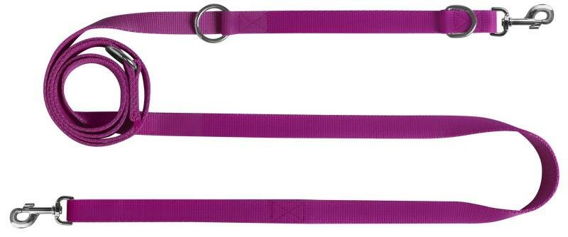 Trwała i niezawodna smycz dla psa wykonana z taśmy polipropylenowej. Klasyczny, uniwersalny model smyczy- od lat niezmiennie modny, nie tracący na popularności. Nasze smycze wykonane są z najwyższej jakości taśmy polipropylenowej, przeszytej grubymi, rymarskimi nićmi. Dzięki regulowanej długości produkt ma wielorakie zastosowanie: jako krótka smycz „codzienna”, długa smycz „plenerowa”, oraz smycz zapinana wokół ciała. Karabińczyki i kółka do przepinania smyczy wykonane są ze stali chromowanej. Produkt dla osób ceniących prostotę, wygodę i przystępną cenę- przy zachowaniu najwyższej jakości. Smycz jest mocna i trwała- nadaje się również dla nieposłusznych zwierząt- nie ulegnie łatwo przerwaniu (wszystko zależy jednak od intensywności ciągnięcia). Możliwość dokupienia obroży, szelek i innych akcesoriów z taśmy gładkiej tego samego koloru i grubości.