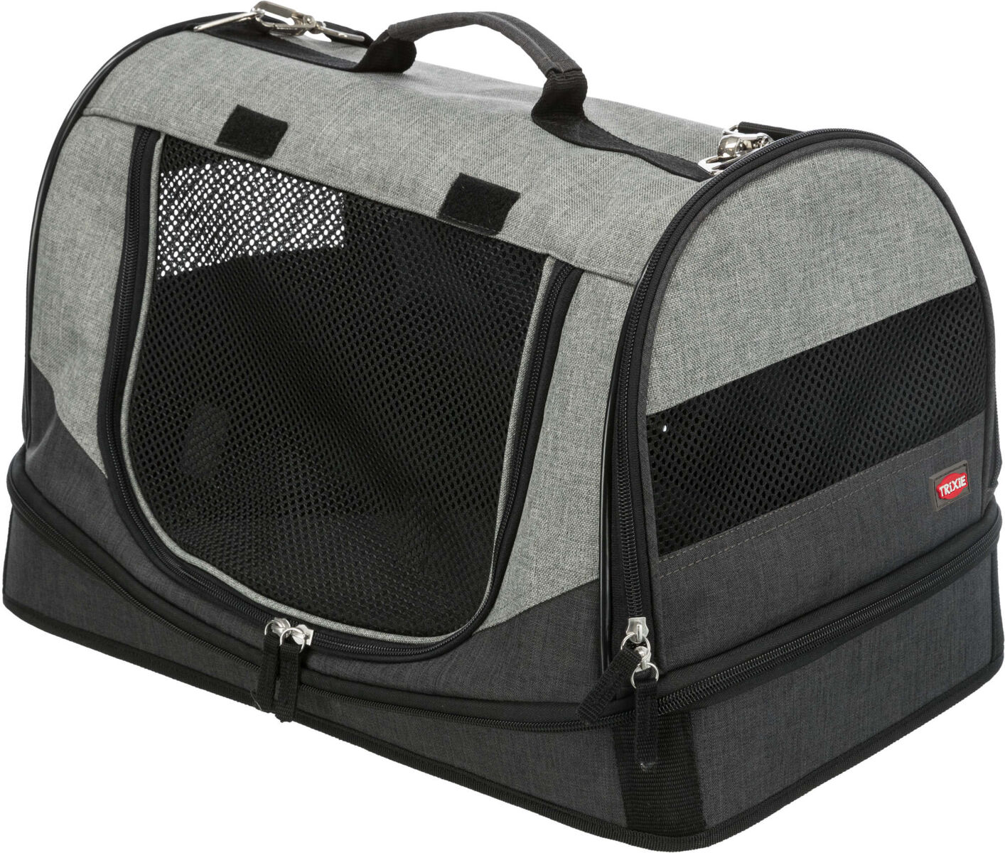 Idealna torba dla małych zwierząt. Torba wykonana z mocnego poliestru. Usztywnione dno zapobiega zapadaniu się torby, siatki wentylacyjne zapewniają odpowiednią cyrkulację powietrza.