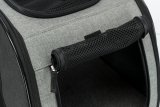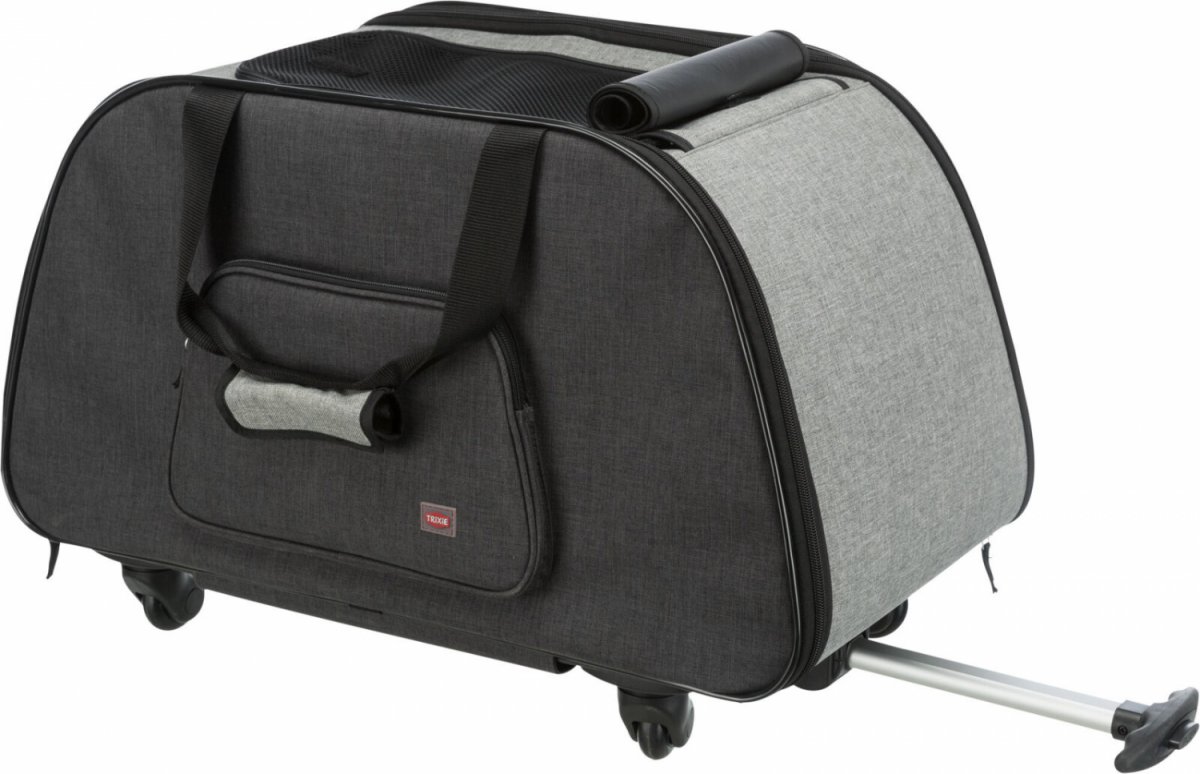 Wózek ten jest odpowiedni dla małych psów, kotów i gryzoni. Jest to idealny towarzysz do wygodnego transportu zwierząt domowych w czasie podróży autobusem lub pociągiem. Wózek jest wykonany z trwałego nylonu, który można łatwo oczyścić. Zintegrowana krótka smycz zapobiega wyskoczeniu pasażera.