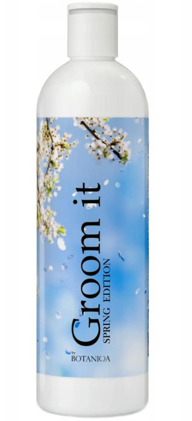 Botaniqa Groom It Shampoo Spring to szampon dla psa o wiosennym zapachu, specjalnie opracowany do mycia zasadniczego. Czyści sierść i przygotowuje ją do kondycjonowania. Zawiera substancje, które pomagają pozbyć się brudu, pozostałości kosmetyków do stylizacji oraz sebum z sierści i skóry zwierząt, a przy tym nie wysuszają futra i nie naruszają naturalnej bariery ochronnej naskórka. Kluczowym składnikiem jest emolient uzyskiwany na bazie oleju rycynowego o działaniu odtłuszczającym, wygładzającym oraz ochronnym. Zabezpiecza skórę i sierść przed utratą wilgoci i szkodliwym działaniem czynników zawnętrznych oraz wspomaga wchłanianie substancji nawilżających z kosmetyków pielęgnacyjnych nakładanych w kolejnych etapach zabiegu.