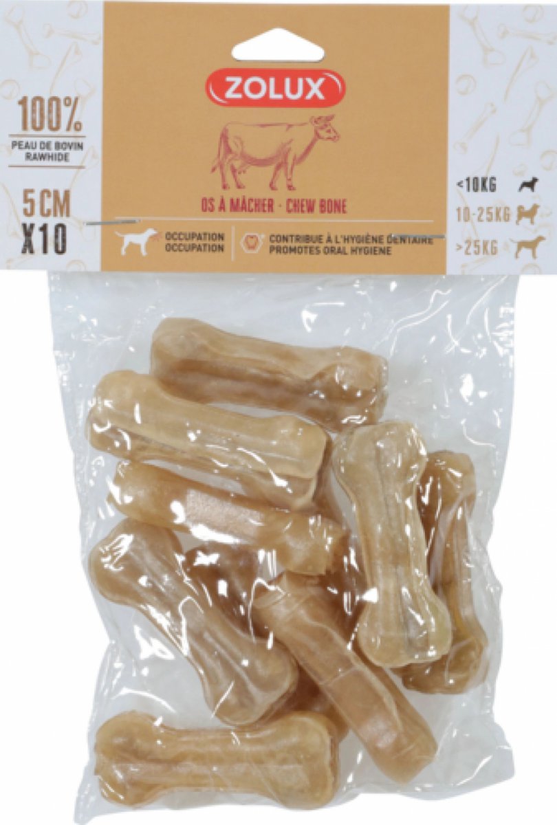Przysmak dla psów w postaci kości prasowanej to idealne uzupełnienie codziennej porcji pożywienia. Wykonana w 100% ze skóry bydlęcej kość zajmie zwierzę na długi czas, wpływając przy tym korzystnie na higienę jego jamy ustnej. Tego rodzaju przysmaki zaspokajają naturalną u psów potrzebę gryzienia i wzmacniają mięśnie szczęk.