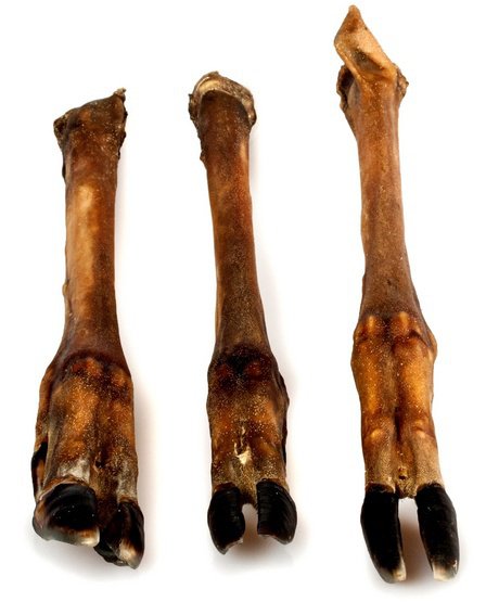 Bawiąc się racicą psy mają do zjedzenia: skórę, ścięgna, pazur, kość i szpik, co zajmuje je na długo i zapewnia urozmaicenie diety.