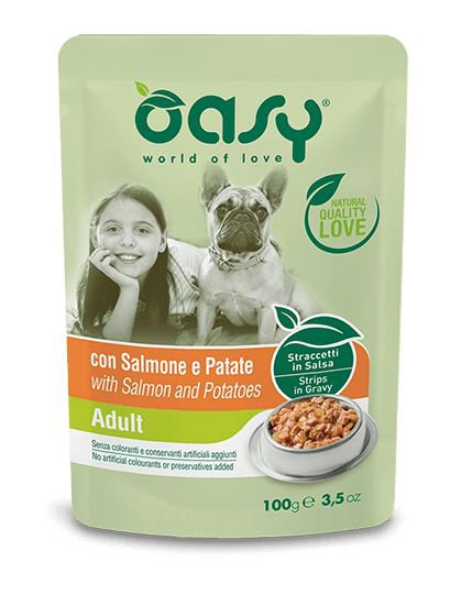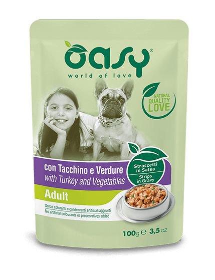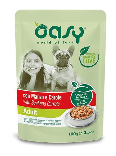 OASY Strips to smakowite, soczyste kąski mięsne w pysznym sosie, wyjątkowa linia karm mokrych dla psów, na różnym etapie ich życia. Kompletna karma pełnoporcjowa, doskonale zbilansowana, w pięciu różnych recepturach i wariantach smakowych, zapakowana w praktyczną jednoporcjową saszetkę.