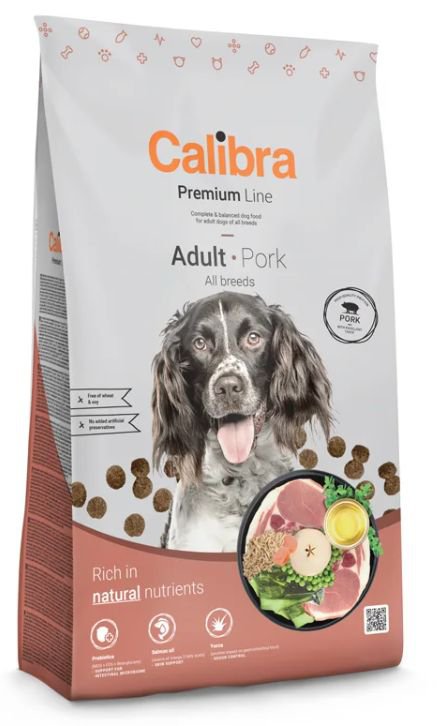 Jest to wysokiej jakości kompletna sucha karma dla wszystkich psów o normalnej aktywności (normalnej codziennej aktywności). Oferuje zrównoważony stosunek wszystkich niezbędnych składników odżywczych, witamin, minerałów i pierwiastków śladowych, aby w pełni zaspokoić wszystkie potrzeby żywieniowe zdrowego psa. Ta monobiałkowa receptura wieprzowa bez pszenicy i glutenu pszennego charakteryzuje się doskonałą wartością odżywczą, co wynika przede wszystkim z dużej zawartości białek i aminokwasów w mięsie wieprzowym. Białka pochodzenia zwierzęcego stanowią łącznie 75%. Karma premium Calibra Premium Line zawiera specjalne, dostosowane do indywidualnych potrzeb dodatki: