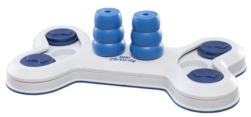 Talerz ze schowkami i skrytkami na smakołyki. Pies musi pomyśleć, aby dostać się do ulubionych przysmaków. Każda skrytka wymaga innej techniki otwarcia. Posiada gumowe antypoślizgowe dno. W komplecie książeczka z poradami.