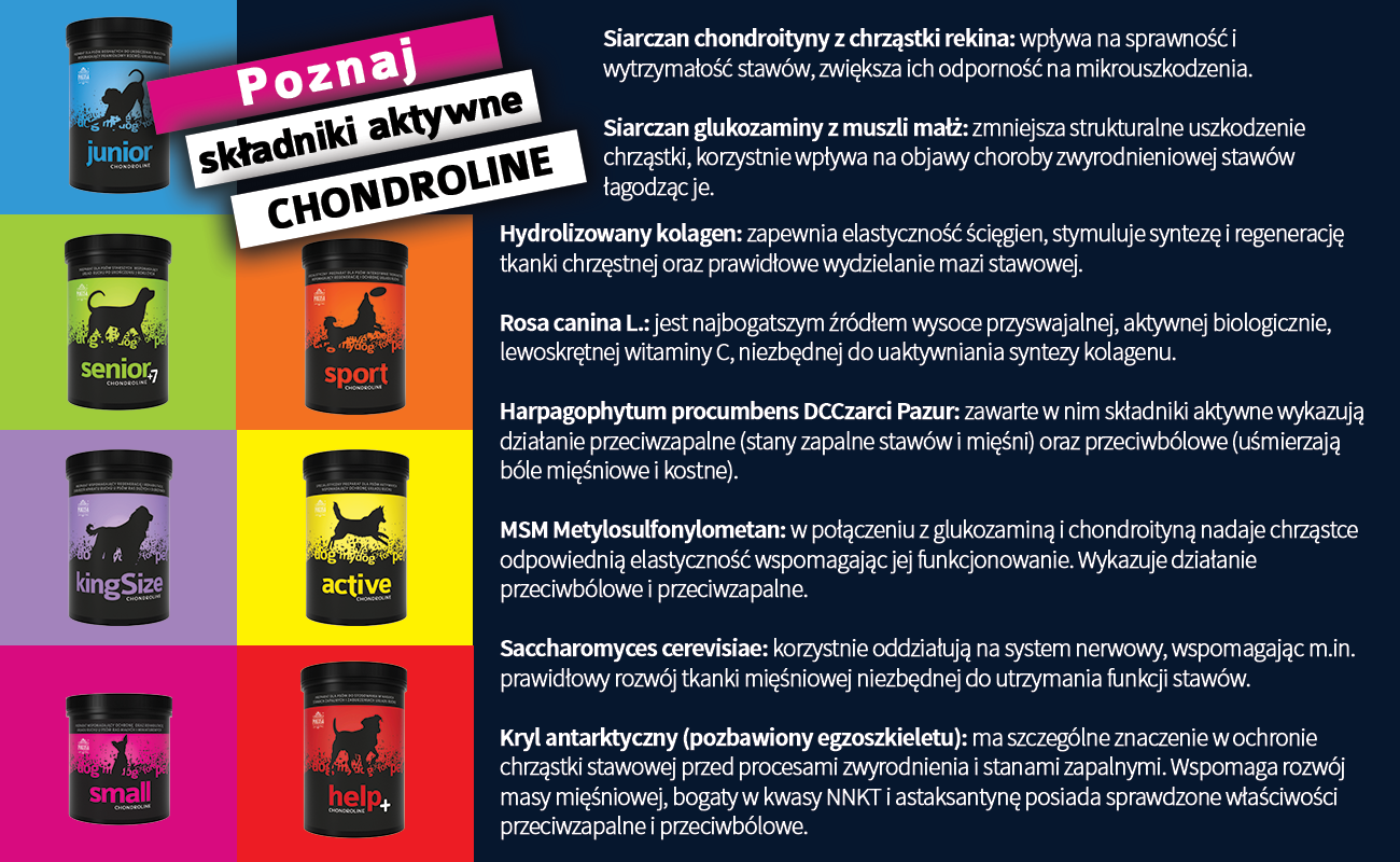 Pokusa Chondroline Senior wspomaga układ kostno-stawowy u psów powyżej 7 roku życia