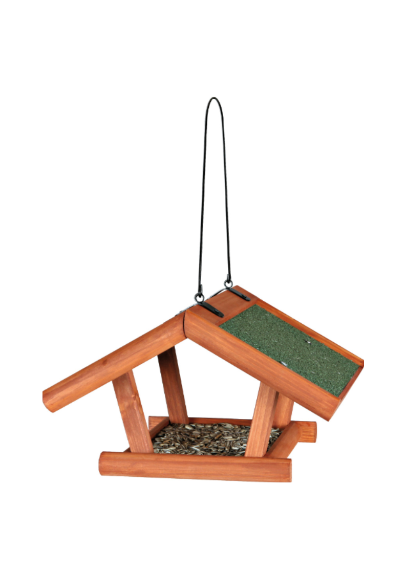 Całoroczne dokarmianie zapewnia przetrwanie wielu gatunków dzikiego ptactwa, przyczyniając się tym samym aktywnie do ich ochrony. Karmnik zrobiony jest z drewna. Posiada żyłkę do zawieszenia np. na drzewie. Duża podstawa sprawia, że ptaki mają sporo miejsca do siadania. Karmnik idealnie sprawdzi się przy dokarmianiu ptaków zimą.