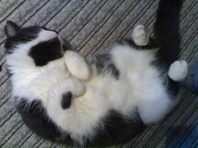 śliczna kicia, nic tylko głaskać po brzuszku